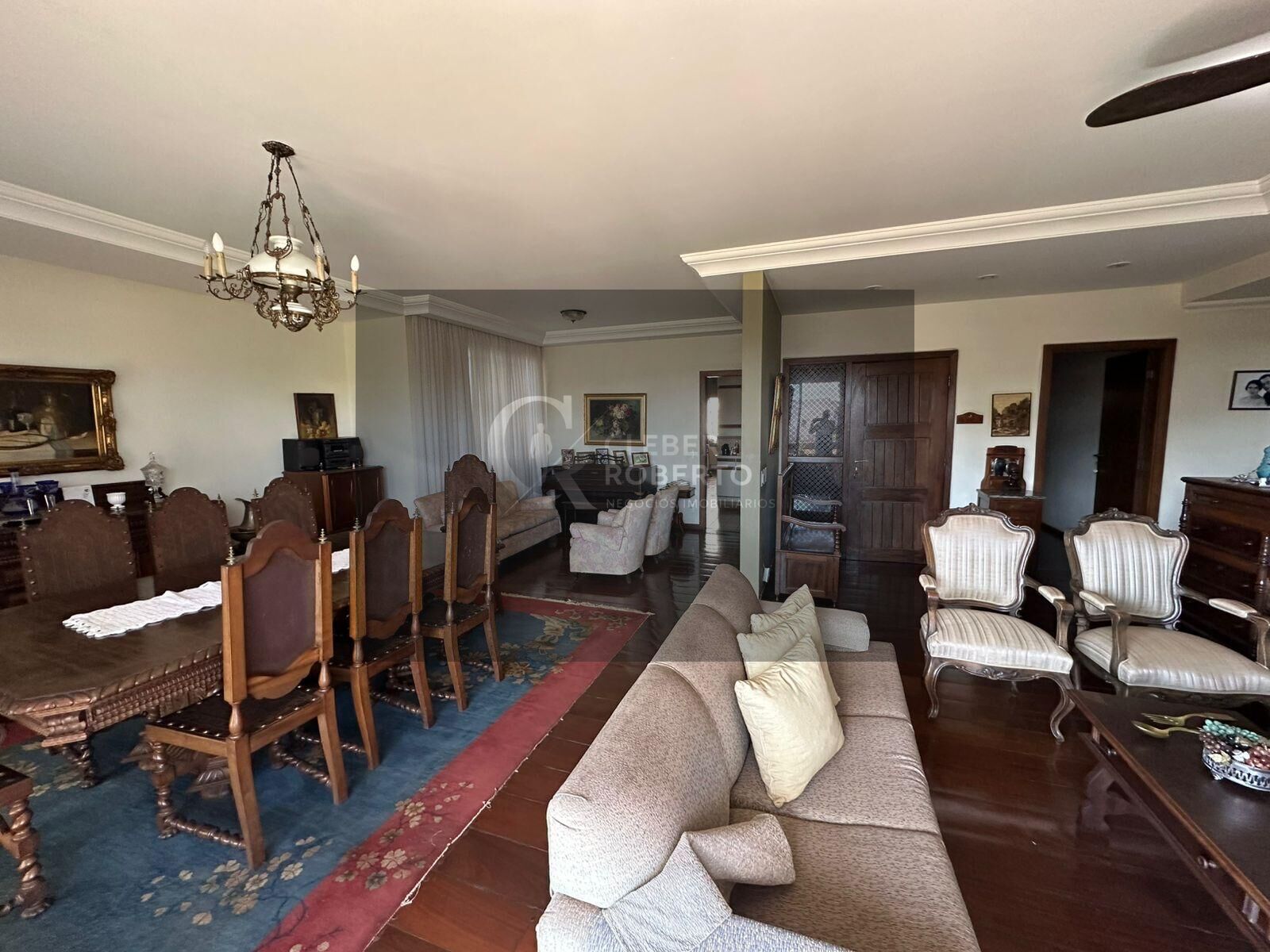 Amplo apartamento de 206,55m² com excelente distribuição interna. Possui três dormitórios espaçosos, sendo uma suíte com banheira, além de quatro banheiros, incluindo lavabo e banheiro de serviço. A sala conta com três ambientes integrados e uma ampla sacada, proporcionando conforto e iluminação natural.